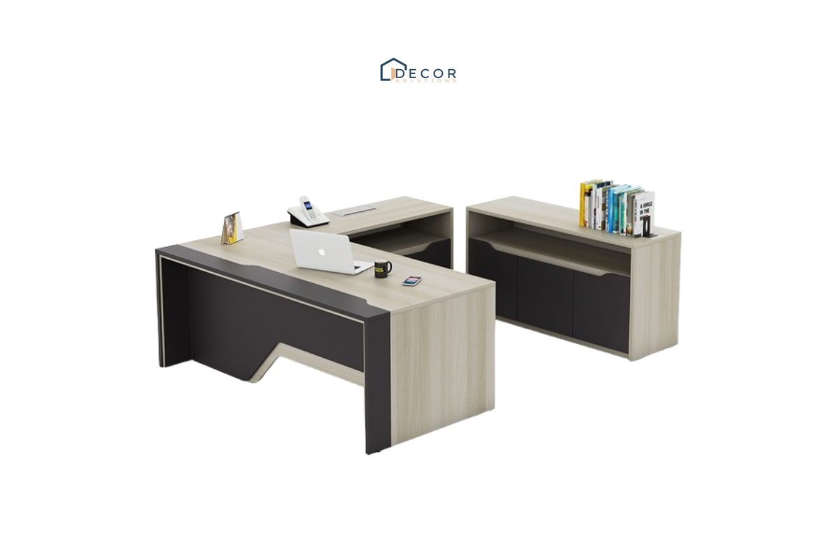 Features: Premium design, ample workspace, storage drawers, side credenza option, and elegant finishing.