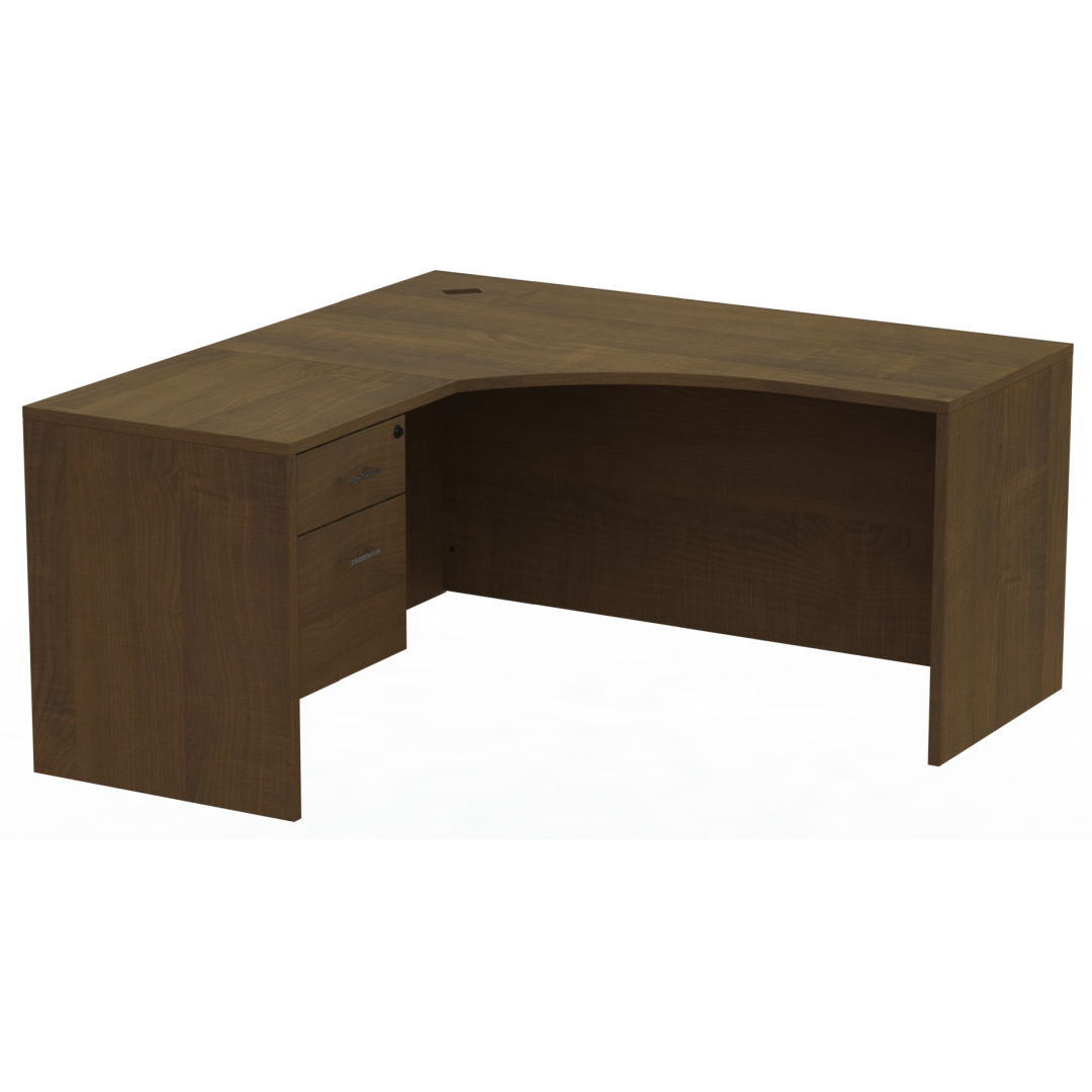 - Layout: Corner-fitted desk with optional return