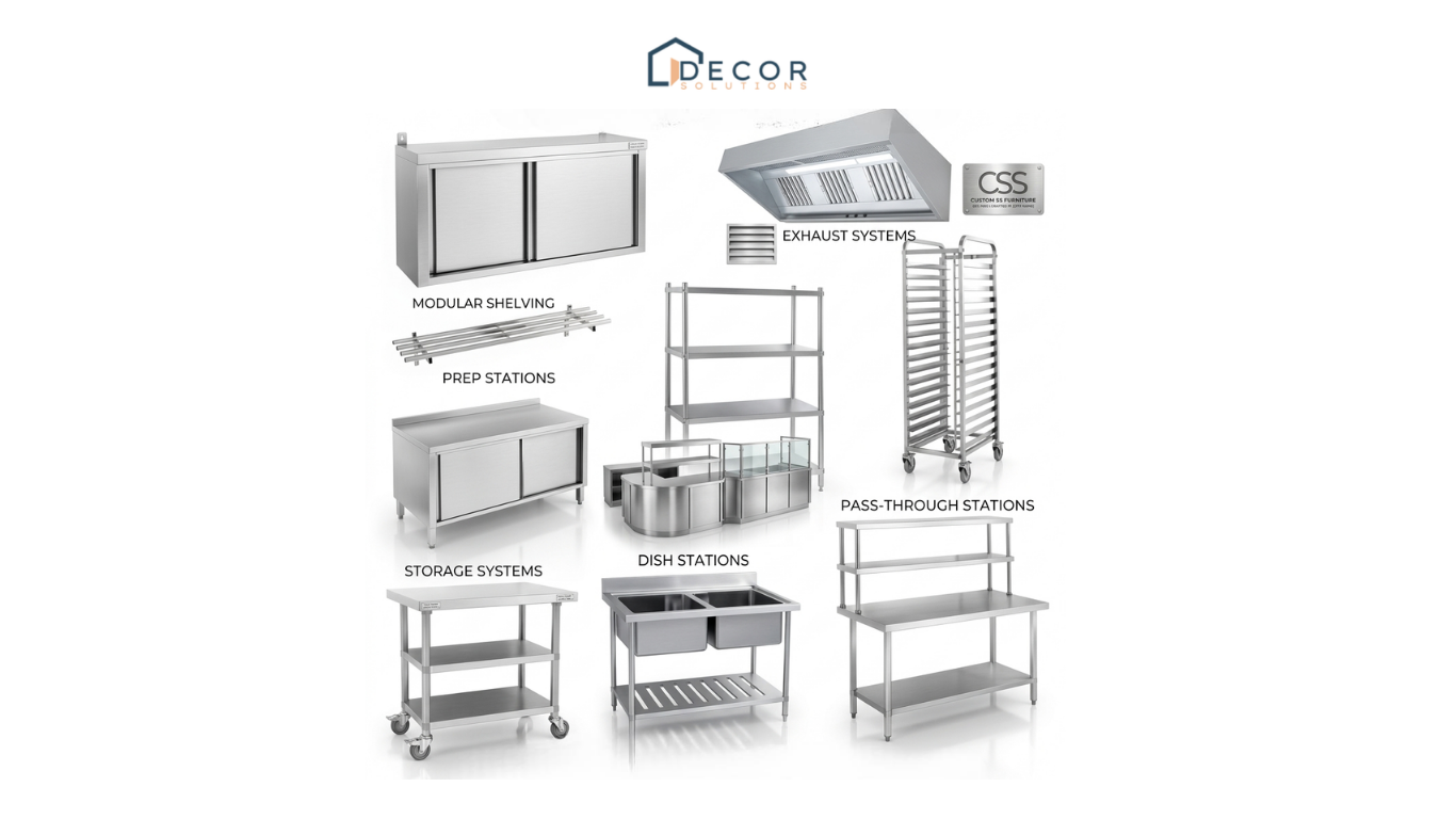 Features: Fully customizable stainless steel furniture, durable construction, sleek industrial finish, and modular design options.