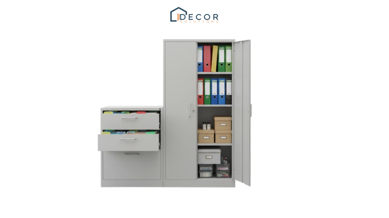 Decor Solutions – INTERIORS & SYSTEMS FURNITURE presents intelligent storage solutions designed for modern workplaces. As a leading storage manufacturer in Noida and Delhi NCR, we create space-optimizing, durable, and aesthetically pleasing storage units that keep your office organized and clutter-free.